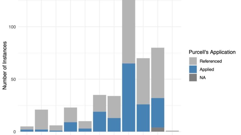 This map shows the rate of cases applying Purcell by state and territory from 2006 through 2024. Darker states have had the concept invoked more frequently.
